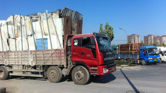 項(xiàng)目周圍基建設(shè)施雖然還算可以,路面較為寬廣,但附近的交通安全問題不容忽視。記者探訪時(shí)看到,項(xiàng)目南側(cè)大門外的道路上大卡車、大貨車橫行,而道路距離最近的樓座不到10米。