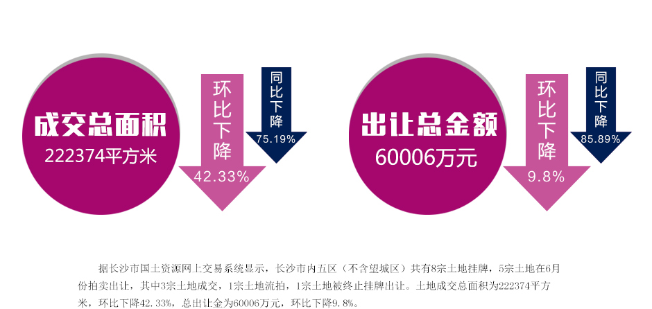 據(jù)長(zhǎng)沙市國(guó)土資源網(wǎng)上交易系統(tǒng)顯示,長(zhǎng)沙市內(nèi)五區(qū)(不含望城區(qū))共有8宗土地掛牌,5宗土地在6月份拍賣(mài)出讓?zhuān)渲?宗土地成交,1宗土地流拍,1宗土地被終止掛牌出讓。土地成交總面積為222374平方米,環(huán)比下降42.33%,總出讓金為60006萬(wàn)元,環(huán)比下降9.8%。[詳情點(diǎn)擊]