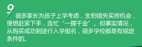 當(dāng)下,孩子是父母親的掌中寶,是父母親的希望,每一位父母親都希望自己的孩子處在最好的環(huán)境里,接受最好的教育,而入讀名校已成為當(dāng)下父母親最常討論的話題,都希望自己的孩子能跑先一步。而時(shí)下,不均的教育資源和城市人口越來越多使得買房子帶學(xué)位也成為一種時(shí)尚。"爸爸去哪兒"的熱播,為自己的孩子選一所名校更是提上議程。