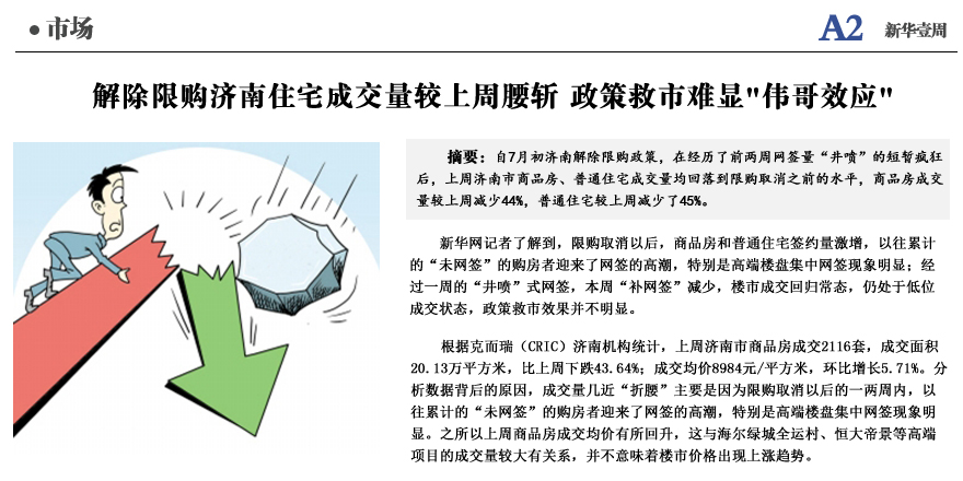 解除限購(gòu)濟(jì)住宅成交量較上周腰斬