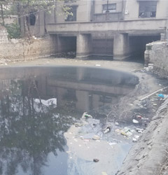 在項(xiàng)目的西面和南面發(fā)現(xiàn)了廣告中的兩條“景觀河”,分別為東西走向和南北走向,這兩條河的確是零距離位于香樹灣的別墅區(qū)沿邊。只是這兩條河均為死水河,其中一條只能稱作水溝。河水呈黑色,河邊上飄著各種垃圾,河水散發(fā)著難聞的惡臭味。宣稱花園、花香的香樹灣搭配這樣兩條“景觀河”似乎略顯不雅。 |