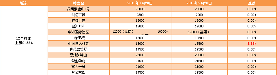 新華房產(chǎn)記者統(tǒng)計發(fā)現(xiàn),2015年2月南京樓市八大板塊中,江寧、河西、城東房價上漲,江北房價下跌,其余板塊房價無變動。 綜合結(jié)果,2月房價環(huán)比微漲0.12%。 [詳細]