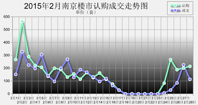 2月的南京樓市整體來看并無太大起伏,多數(shù)開發(fā)商坦言已經(jīng)開始收回年前部分優(yōu)惠,接下來將全力沖刺“金三銀四”。 新華房產(chǎn)記者統(tǒng)計發(fā)現(xiàn),2015年價環(huán)比微漲0.12%。截止到2月28日,南京網(wǎng)上房地產(chǎn)數(shù)據(jù)顯示,2月南京樓市新房認購4094套、成交3295套,日均賣房146套。環(huán)比上月認購量下跌4成,成交量下跌近5成。