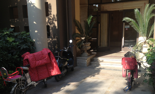 小區(qū)內(nèi)部管理方面,亂停車現(xiàn)象、亂曬被子現(xiàn)象隨處可見。記者發(fā)現(xiàn),雖然每棟單元樓前都貼有嚴(yán)禁停放非機(jī)動(dòng)車的標(biāo)識(shí),但許多業(yè)主仍然圖方便,將車停在各幢的一層大堂或者路旁的綠化帶旁邊。