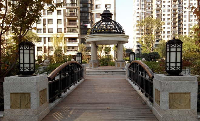 記者走訪小區(qū)時(shí)發(fā)現(xiàn),小區(qū)做到了一步一景,閑庭信步,不會(huì)感覺乏味,每走到一個(gè)地方可以通過不同角度欣賞小區(qū)的亭臺(tái)樓閣,小橋流水。據(jù)悉,綠地紫峰公館小區(qū)規(guī)劃參照了世界最美花園——英國伯德南特花園,利用藍(lán)色水系和綠色有氧跑道打造而成。