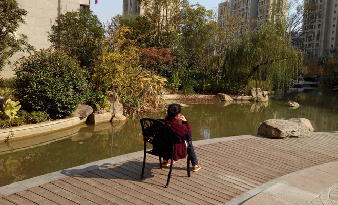 記者隨著她手指的方向看去,小區(qū)“湖”里確實(shí)養(yǎng)有許多小型的紅色鯉魚。“小區(qū)景觀綠化好,就跟公園一樣?!笔沁@位準(zhǔn)媽媽對(duì)她所居住的綠地紫峰公館的感受。