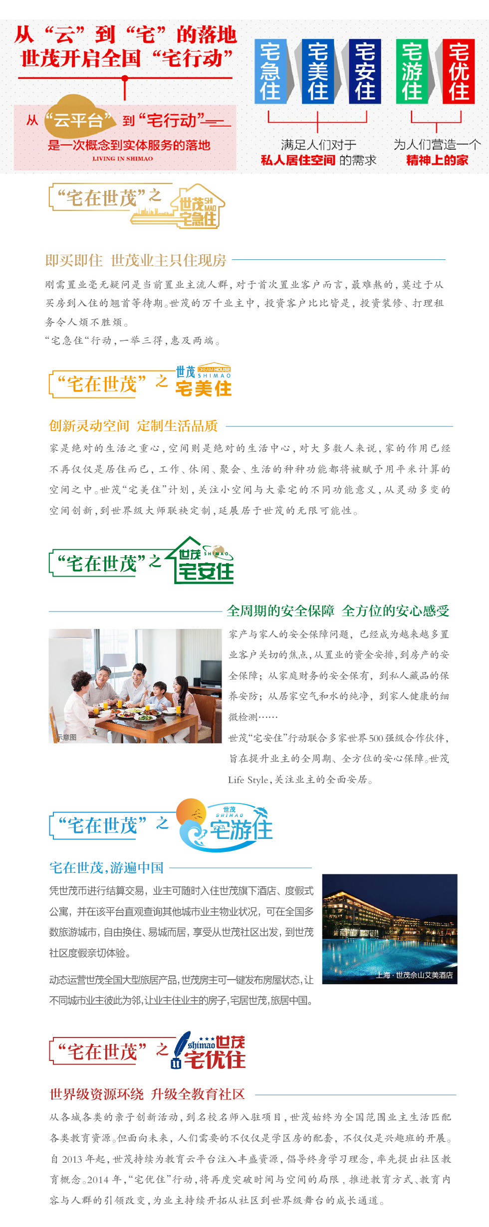 10月9日下午15時(shí),世茂“宅生活”品牌展啟幕,這意味著世茂宅行動(dòng)正式落地南京。另一方面,世茂也借由這一活動(dòng)逐步從房地產(chǎn)開(kāi)發(fā)商轉(zhuǎn)型為生活服務(wù)商,給業(yè)主帶去更為精準(zhǔn)的服務(wù)。 世茂“宅行動(dòng)”包括宅急住、宅美住、宅安住、宅游住、宅優(yōu)住,針對(duì)業(yè)主在置業(yè)生活中的痛點(diǎn),實(shí)際解決其置業(yè)、財(cái)務(wù)、安全、健康、教育、度假等多方面問(wèn)題。 實(shí)現(xiàn)購(gòu)房首付貸、房屋租賃、裝修設(shè)計(jì)、私人健康管理、瑞士保險(xiǎn)箱計(jì)劃、旅游居住、教育及管家服務(wù)等諸多服務(wù)內(nèi)容。