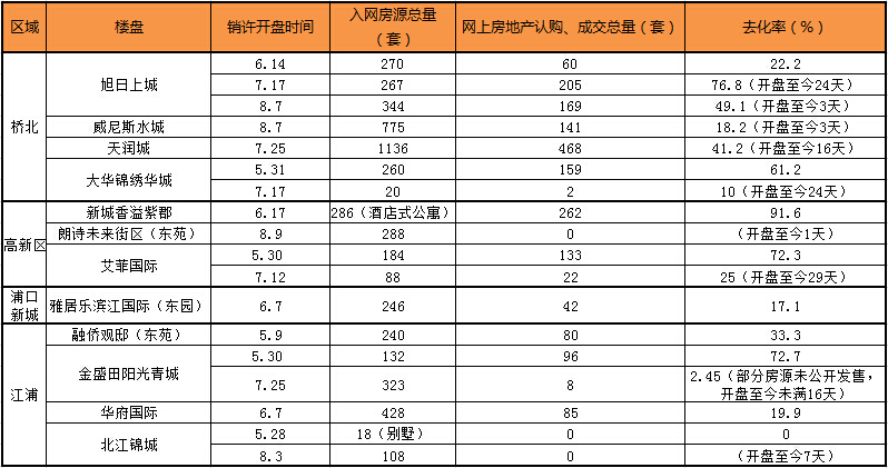 新華網(wǎng)記者將目前六合、大廠區(qū)域在售的9家熱點(diǎn)樓盤,5、6、7三個月內(nèi)的12次開盤納入統(tǒng)計范疇,結(jié)果發(fā)現(xiàn),其中6家樓盤的7次推售,已持續(xù)一個月時間,但去化率不足50%。[詳細(xì)]