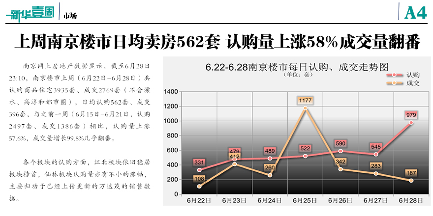 上周南京樓市日均賣房562套