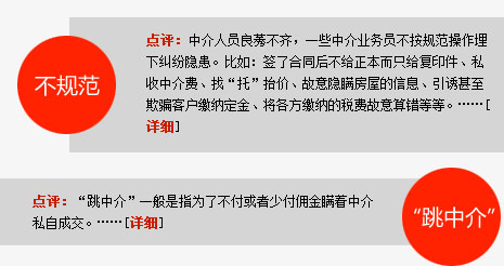 二手房買賣是一種特殊的商品交易,因其金額大及交易周期長及交易流程專業(yè)復(fù)雜(簽約、貸款、評估、過戶、還貸、付款、交房等),一不小心就容易出現(xiàn)糾紛,買賣雙方最好還是要通過房屋中介來買賣,不過在選擇房屋中介公司和房產(chǎn)經(jīng)紀人的時候,消費者可要多留個心眼?!璠詳細]