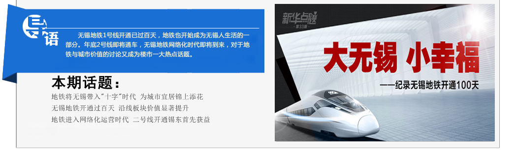 無錫地鐵1號線開通已過百天,地鐵也開始成為無錫人生活的一部分。年底2號線即將通車,無錫地鐵網(wǎng)絡(luò)化時代即將到來,對于地鐵與城市價值的討論又成為樓市一大熱點(diǎn)話題。