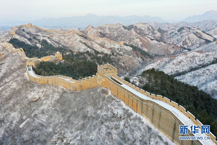 這是3月1日在河北承德境內(nèi)拍攝的金山嶺長(zhǎng)城雪景(無(wú)人機(jī)照片)。新華社發(fā)(周萬(wàn)平 攝)