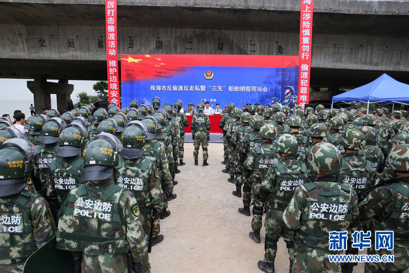 珠海邊防支隊(duì)舉行大型“三無”船銷毀現(xiàn)場(chǎng)會(huì)。周捷 攝