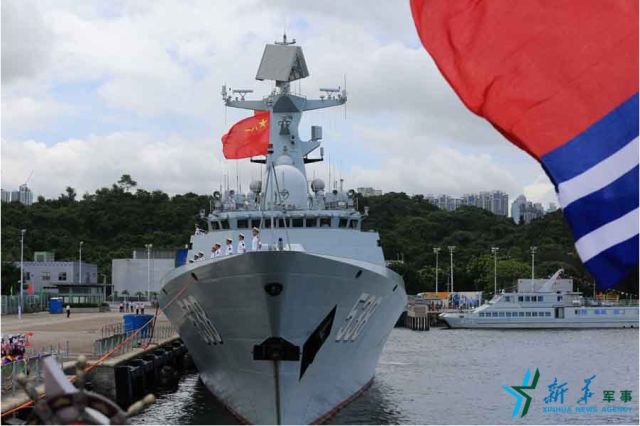 ↑7月7日,海軍濟(jì)南艦緩緩駛?cè)胂愀郯捍薮a頭。新華社記者 曾濤 攝