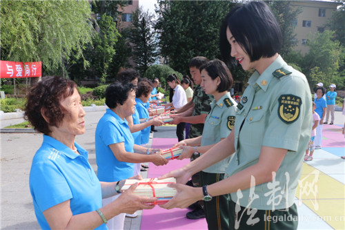 圖為邊檢站官兵為社區(qū)老黨員送“兩學(xué)一做”系列圖書
