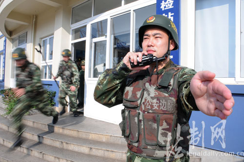 圖為邊檢官兵聽(tīng)到警報(bào)快速反應(yīng)