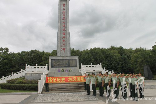 圖為邊防官兵在紀(jì)念碑前進(jìn)行“銘記歷史 勿忘國(guó)恥”宣誓紀(jì)念活動(dòng)