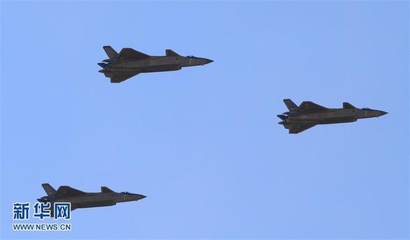 7月30日,慶祝中國人民解放軍建軍90周年閱兵在位于內(nèi)蒙古的朱日和訓(xùn)練基地舉行。這是殲擊機梯隊的殲-20戰(zhàn)機。新華社記者 李剛 攝