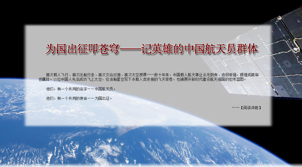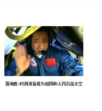 ??? 時刻準(zhǔn)備著,將祖國的榮耀一次次寫滿太空。在我加入航天員大隊后,有2件事深深地烙在我的腦海中。一是,一位老華僑在神舟五號任務(wù)成功后,含淚而說的“你們航天員飛得有多高,我們海外游子的頭就能昂多高”。二是,我們面對國旗許下的誓言,“為祖國的載人航天事業(yè)奮斗終身”。我始終以嚴(yán)慎細(xì)實的精神,以時不我待的狀態(tài),腳踏實地、努力學(xué)習(xí)、刻苦訓(xùn)練,以實際行動踐行諾言,用一生的執(zhí)著與追求,時刻準(zhǔn)備著,將祖國的榮耀一次次寫滿太空!?