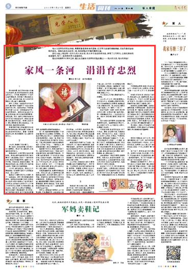 眼瞅著又快到建軍節(jié)了,昨個兒,我叫來大兒子敬朋,指著門楣上懸掛的“光榮之家”牌匾,對他說:“兒啊,把匾取下來,擦干凈,8月1日那天早上咱再掛上去,要讓早上的太陽,首先照亮它。因為——它就是咱家代代相傳、鮮血凝成的家風啊!”(楊知雪/口述 謝學楓/整理)