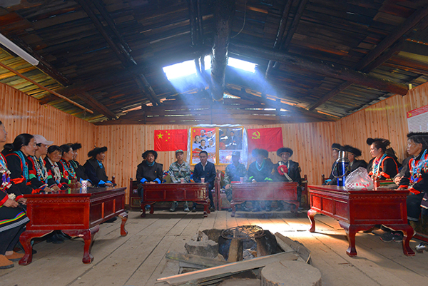邊防官兵為珞巴族群眾宣講脫貧政策。張迅 攝