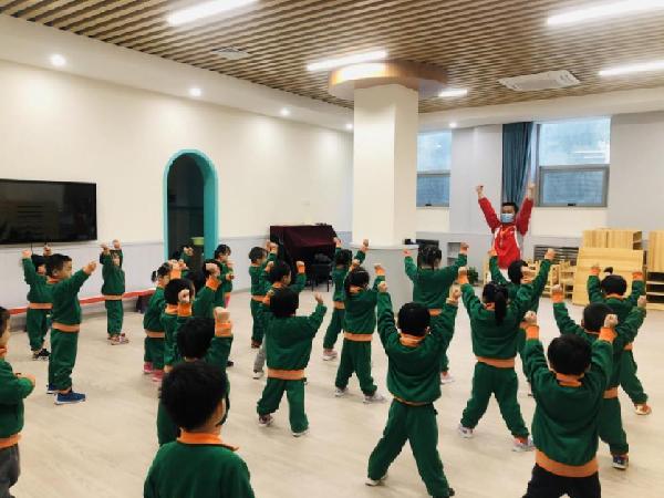 教師組織小朋友開展體育活動(dòng)。嚴(yán)婷婷 攝