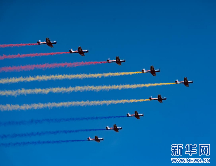 9月20日,空军八一飞行表演队进行飞行表演。新华网 丁梓朔 摄