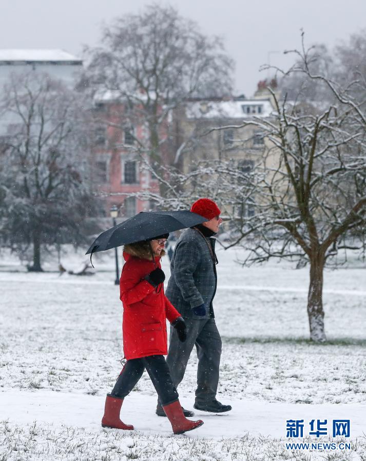 1月24日,人們?cè)谟鴤惗氐难┑厣闲凶?。新華社記者韓巖攝