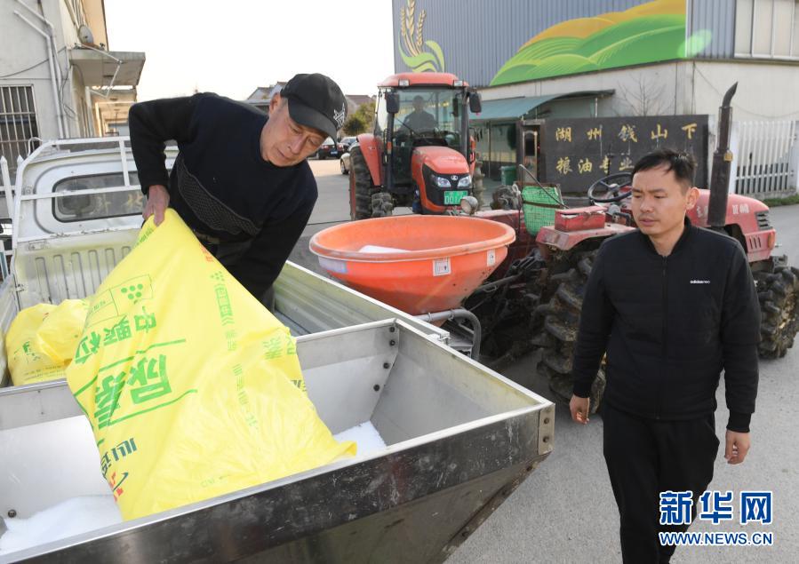 2月23日,湖州錢(qián)山下糧油專業(yè)合作社工作人員在農(nóng)機(jī)內(nèi)裝載化肥準(zhǔn)備施肥。立春過(guò)后氣溫回升,浙江省湖州市吳興區(qū)道場(chǎng)鄉(xiāng)全力開(kāi)展春耕工作。今年該鄉(xiāng)計(jì)劃播種農(nóng)作物總面積1.2萬(wàn)畝,其中水稻5000畝、小麥2000畝。新華社記者 翁忻旸 攝
