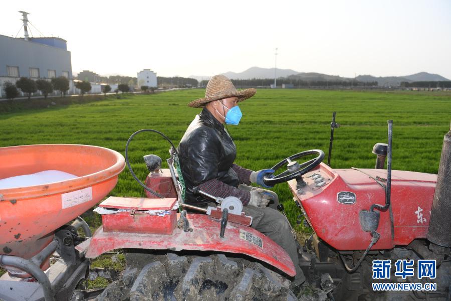 2月23日,湖州錢山下糧油專業(yè)合作社工作人員駕駛農(nóng)機(jī)前往田間給小麥?zhǔn)┓?。立春過后氣溫回升,浙江省湖州市吳興區(qū)道場鄉(xiāng)全力開展春耕工作。今年該鄉(xiāng)計(jì)劃播種農(nóng)作物總面積1.2萬畝,其中水稻5000畝、小麥2000畝。新華社記者 翁忻旸 攝