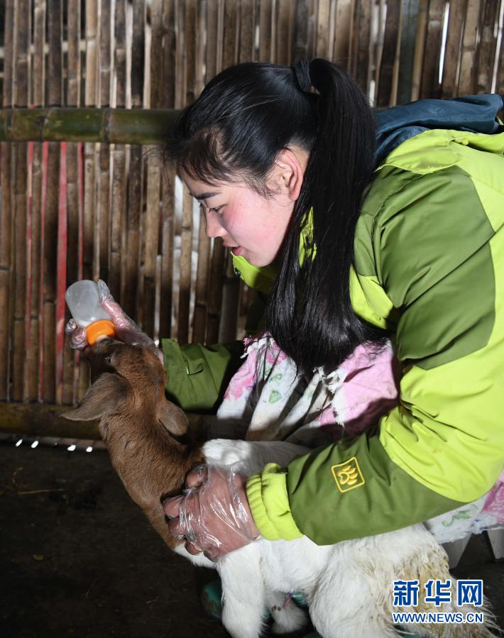 張志菊在自家農(nóng)場里給小羊喂奶(2月27日攝)。