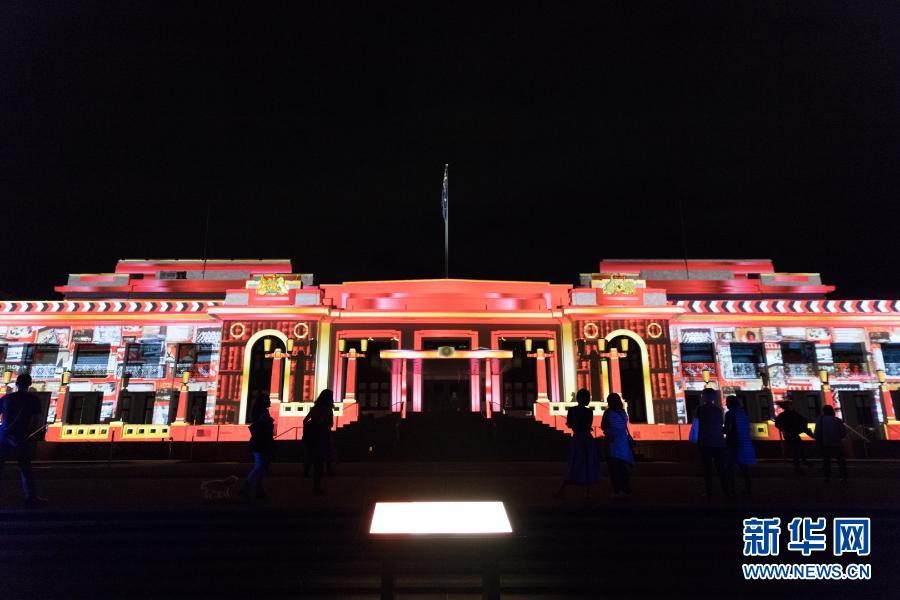 這是3月8日在澳大利亞堪培拉拍攝的老國會大樓的燈光投影。