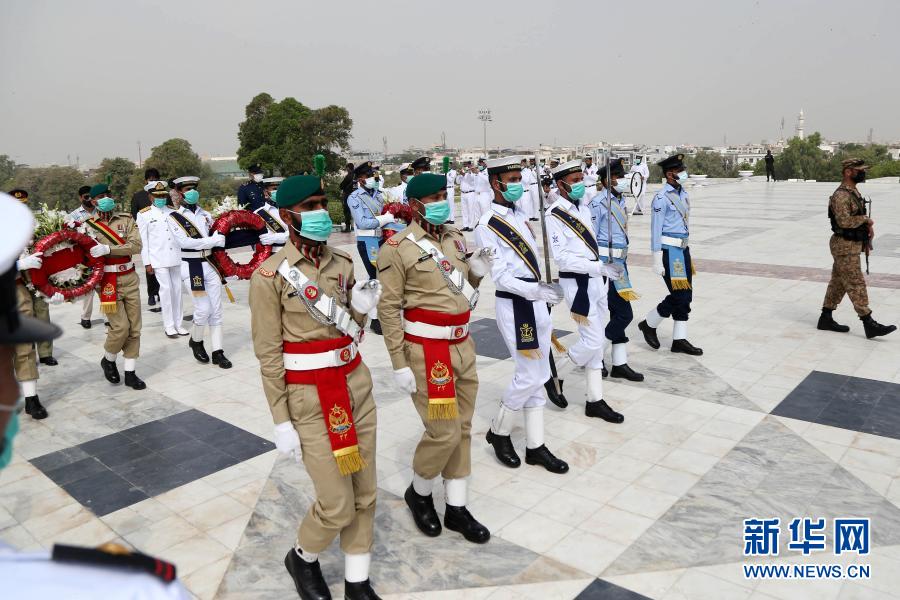 3月23日,巴基斯坦軍人在位于卡拉奇的國父真納墓參加“巴基斯坦日”紀(jì)念活動。