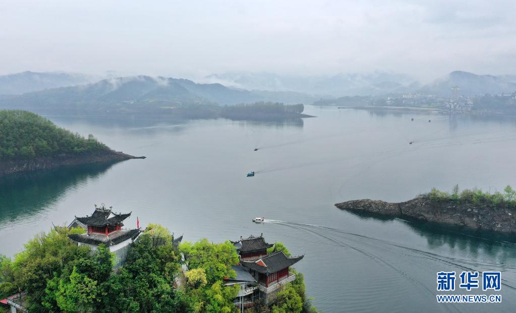 秦巴山區(qū)的陜西省安康市漢濱區(qū)流水鎮(zhèn),一面依山三面環(huán)水。山水之間,鄉(xiāng)村農(nóng)家,與滿目青山中的茶園果園相映成趣,構(gòu)成一幅清新悠然的田園畫卷。湖邊沿岸點綴的多處名勝古跡,更為小鎮(zhèn)增添了文化韻味。