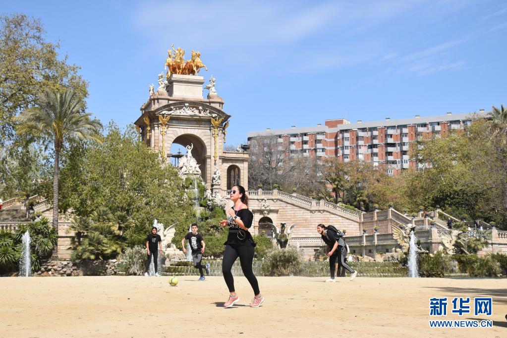 3月30日,人們在西班牙巴塞羅那城堡公園內鍛煉。