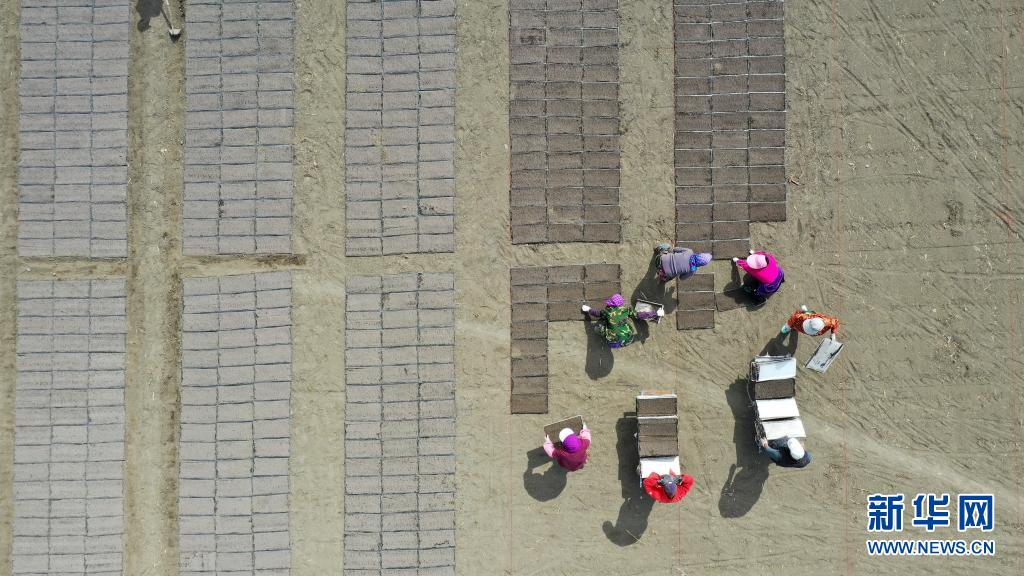 4月3日,唐山蘆臺經(jīng)濟開發(fā)區(qū)四分場的農(nóng)民在稻田地里碼放育苗盤(無人機照片)。春耕時節(jié),河北省唐山市蘆臺經(jīng)濟開發(fā)區(qū)農(nóng)民搶抓農(nóng)時,開展稻田整地、水稻育秧等工作。新華社發(fā)(董軍 攝)