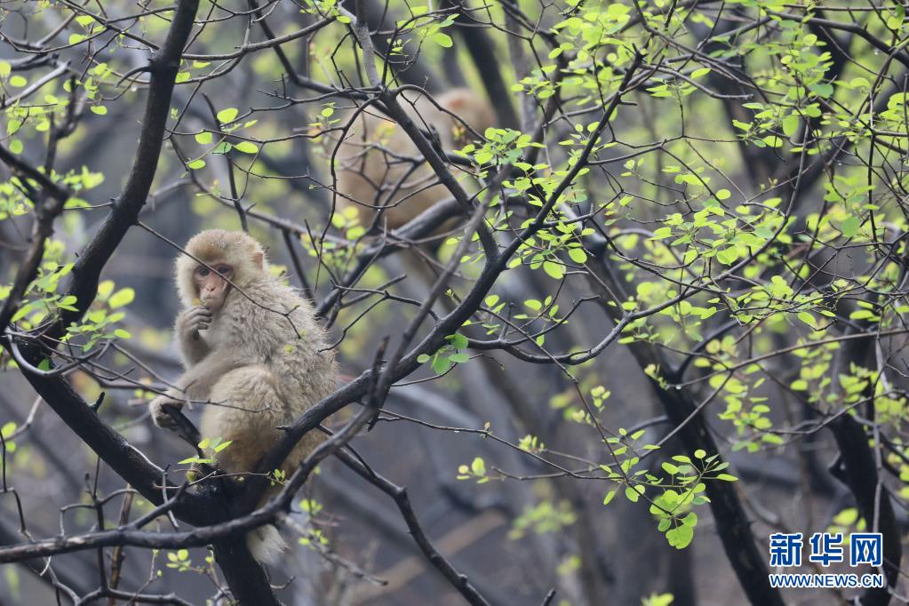 4月3日,在神農(nóng)山風(fēng)景區(qū),野生太行獼猴在樹上嬉戲。隨著氣溫回暖,河南省沁陽市神農(nóng)山風(fēng)景區(qū)野生太行獼猴活躍起來,在山林間嬉戲玩鬧,為景區(qū)增添生機和靈氣。新華社發(fā)(徐宏星 攝)