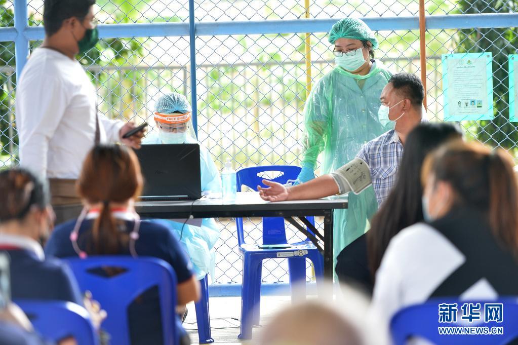 4月7日,居民在泰國(guó)曼谷等待接種中國(guó)科興新冠疫苗。
