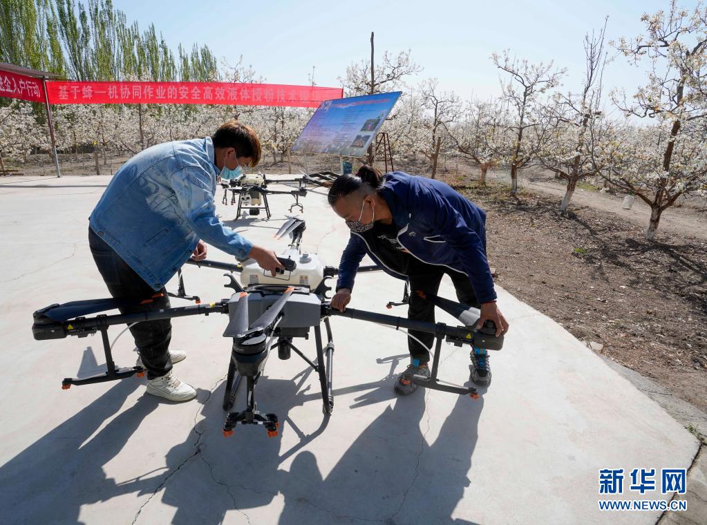 新華全媒+丨新疆:梨農授粉用上無人機