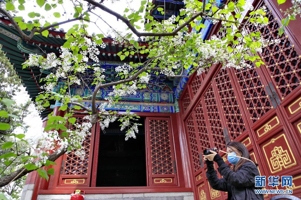 4月11日,游客在北京法源寺拍攝盛開的丁香花。新華社發(fā)(劉憲國 攝)