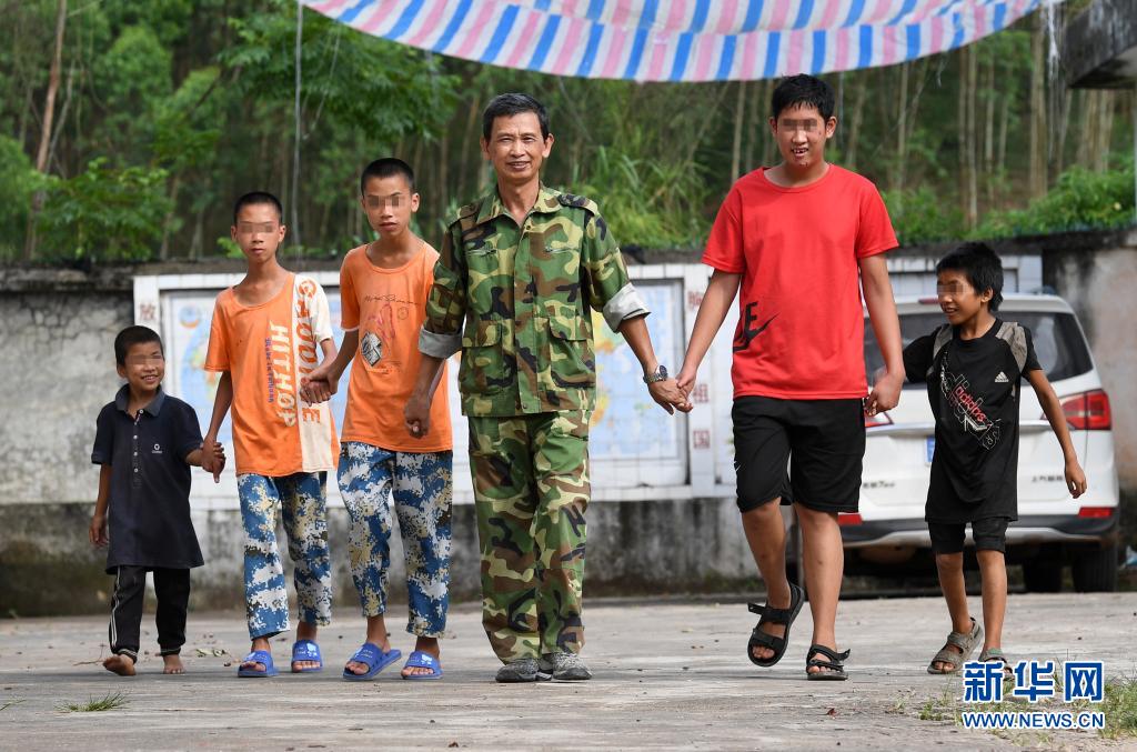 在廣西十萬(wàn)大山北麓莽莽群山間,61歲的退休黨員教師梁志雄,繼續(xù)堅(jiān)守已經(jīng)站了40多年的講臺(tái),演繹著一名老師陪伴五名殘障學(xué)生的感人故事。