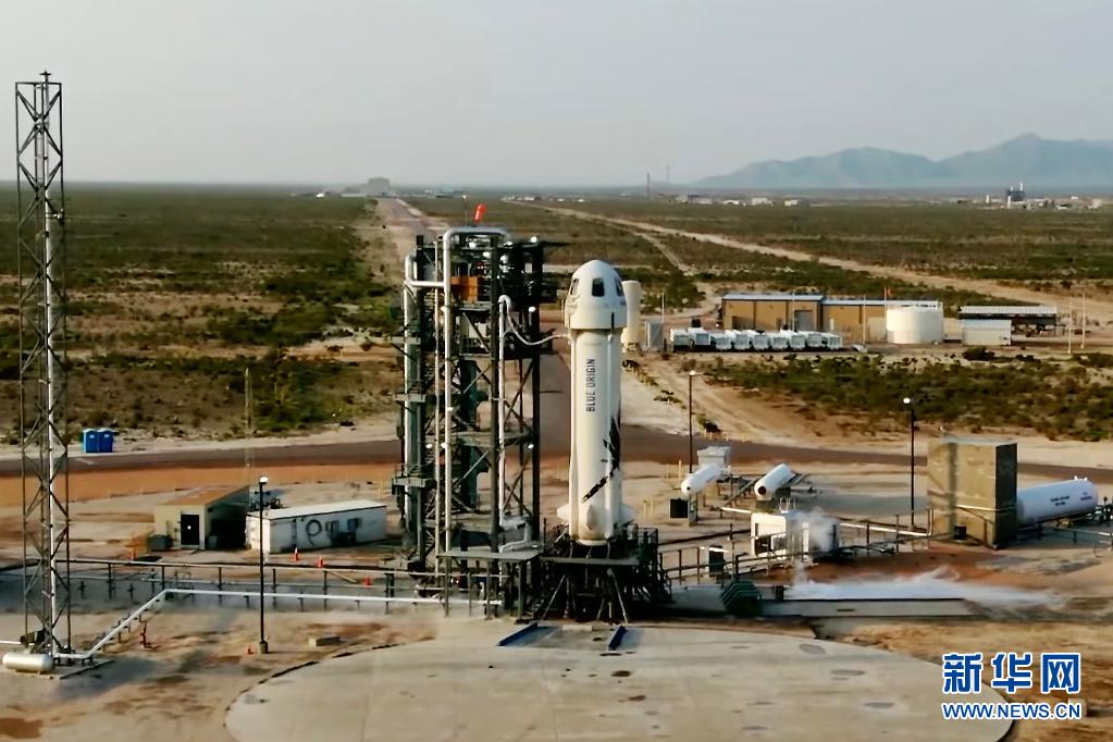 這張美國藍(lán)色起源公司7月20日發(fā)布的視頻截圖顯示“新謝潑德”飛行器在美國得克薩斯州西部一處發(fā)射場(chǎng)準(zhǔn)備升空。