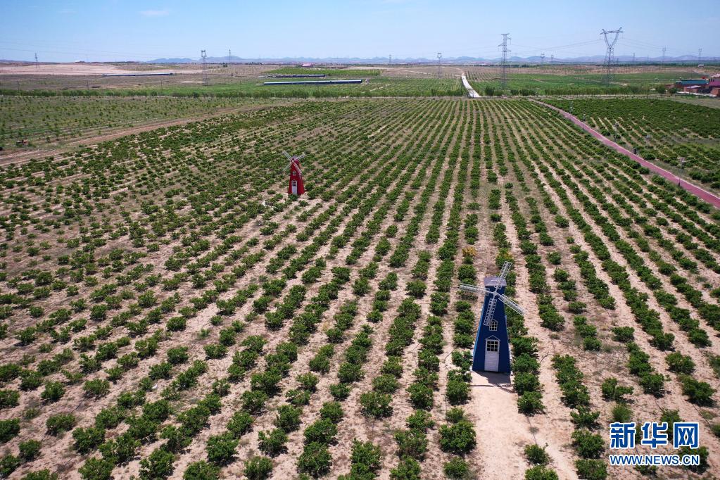 這是寧夏同心縣圣峰休閑生態(tài)觀光園內(nèi)的玫瑰觀光區(qū)(6月22日攝,無人機(jī)照片)。新華社記者 楊植森 攝