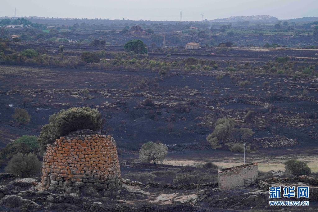 這是7月26日在意大利撒丁島奧里斯塔諾拍攝的被燒毀的土地。