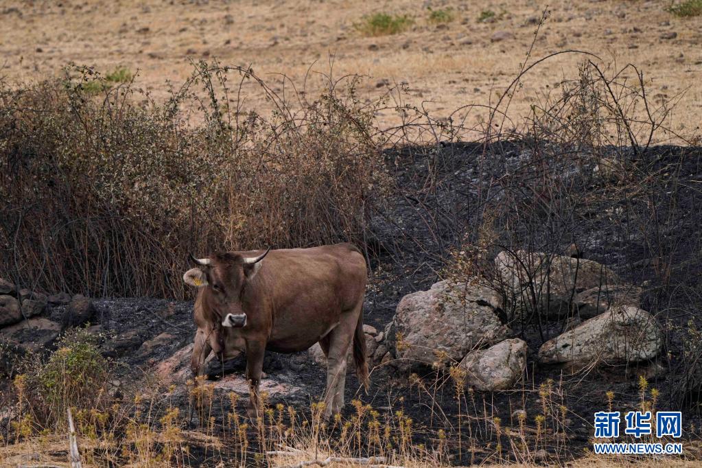 7月26日,一頭牛站在意大利撒丁島奧里斯塔諾被燒毀的土地上。