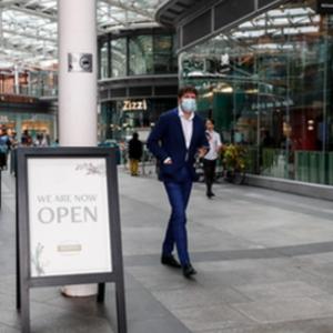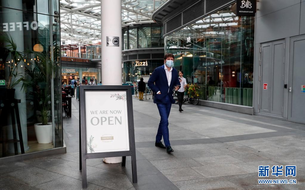 7月26日,一名戴口罩的男子從英國倫敦維多利亞一家開放的餐廳旁走過。