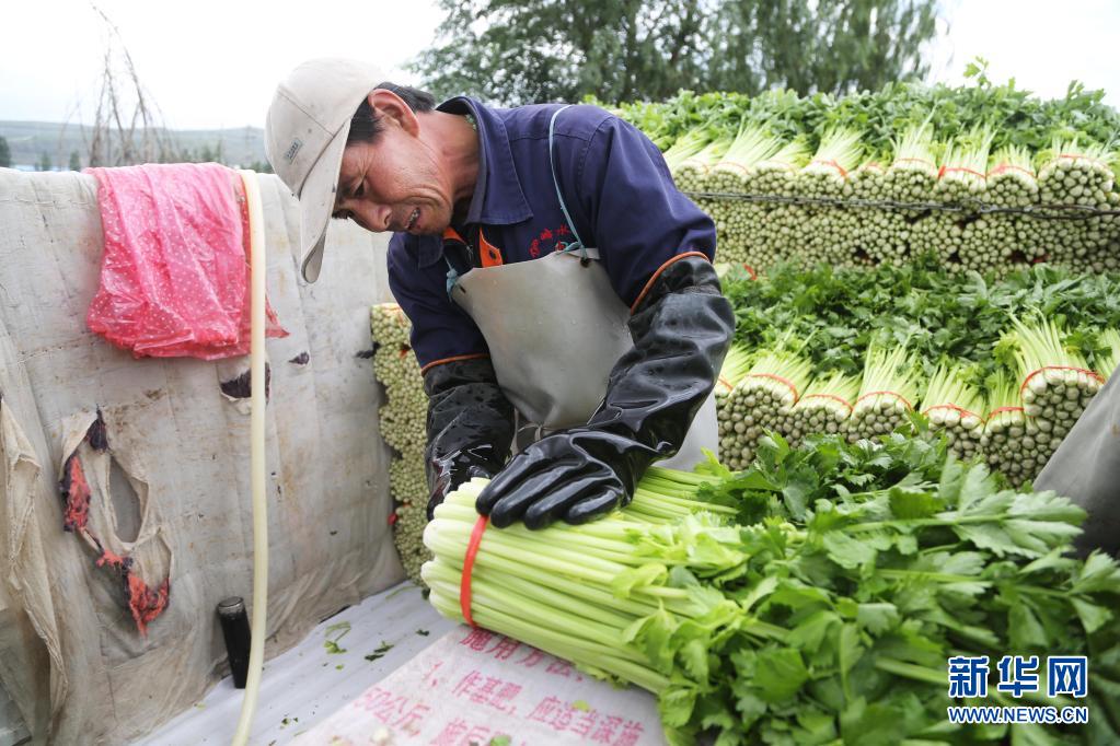 7月27日,甘肅省定西市安定區(qū)鳳翔鎮(zhèn)中川村村民將芹菜裝車(chē)。新華社發(fā)(王克賢 攝)