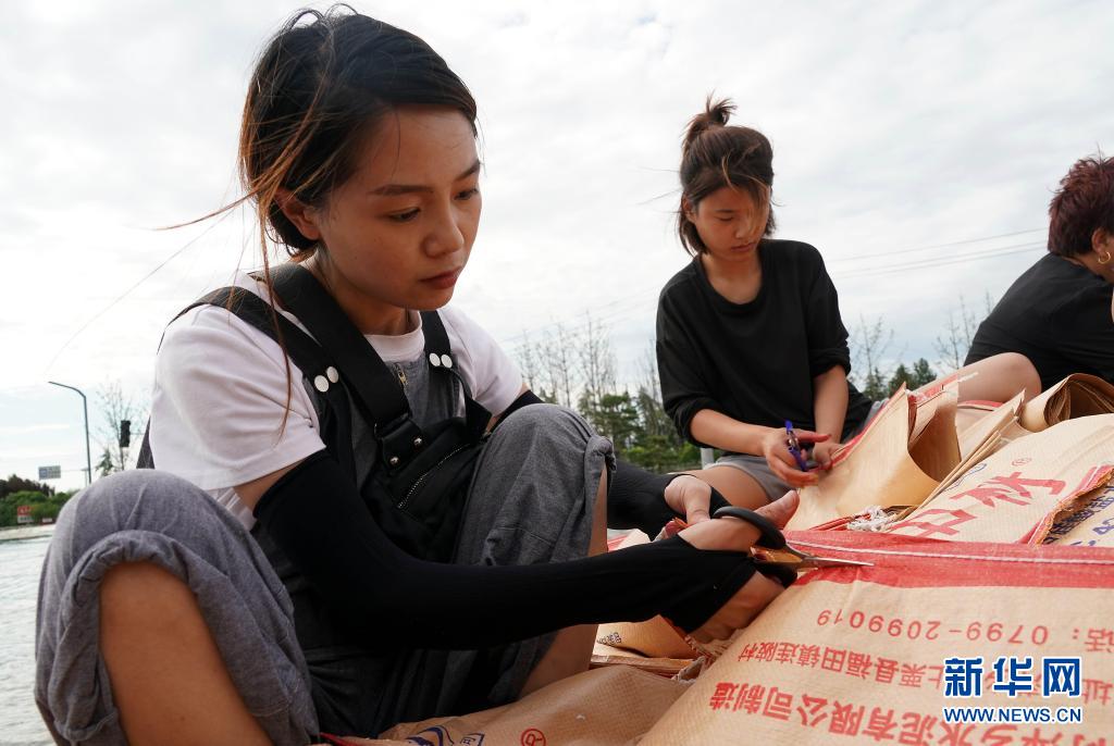 當(dāng)日,在河南省鶴壁市??h傅莊堤上,不少群眾自發(fā)前來和救援人員一起裝沙袋、運沙袋,共筑堤壩。受持續(xù)強(qiáng)降雨影響,??h防汛形勢嚴(yán)峻,傅莊堤主要為??h縣城及26個村莊提供保護(hù)。新華社記者 李安 攝