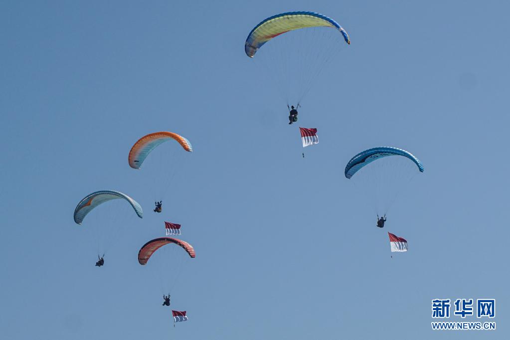 8月17日,懸掛印度尼西亞國(guó)旗的滑翔傘飛過巴厘島上空。8月17日是印度尼西亞獨(dú)立日。新華社發(fā)(比辛拉西攝)