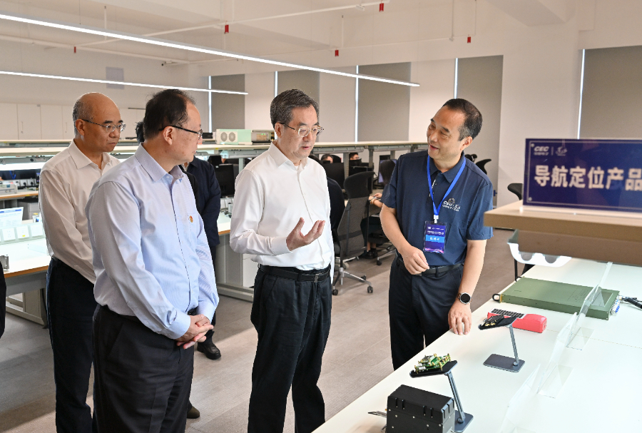 9月23日,中共中央政治局常委、国务院副总理丁薛祥在湖南调研。这是丁薛祥在湖南中电星河电子有限公司调研。